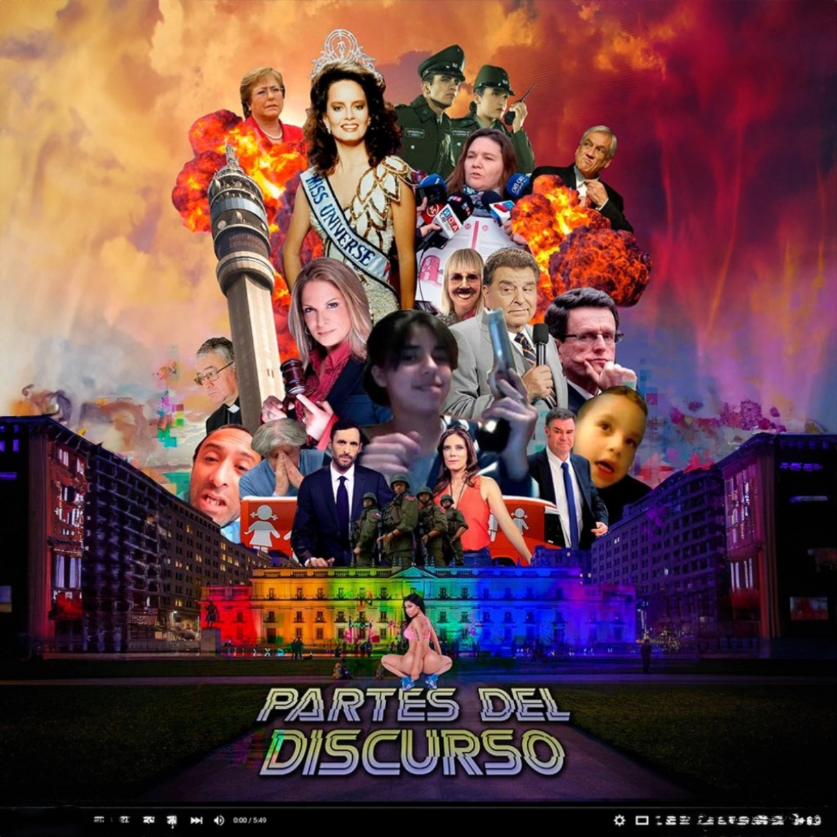 PARTES DEL DISCURSO (2016-2017) es una serie de 9 video mash-ups que fusiona fragmentos de videos virales, contenido televisivo, entrevistas a figuras de la farándula y política chilena, videobloggers, videoclips y otros materiales alojados en YouTube, la biblioteca audiovisual más grande de nuestro tiempo. A través de la recopilación, apropiación y reinterpretación de estos contenidos, y tomando como referencia las dinámicas de la industria del entretenimiento, la serie ofrece una mirada crítica sobre la realidad nacional chilena, una sociedad delirante y espectacularizada. Se exploran temas de actualidad y contingencia, proponiendo una reflexión sobre el estado actual de la imagen en el contexto de las redes sociales, invitando a cuestionar cómo los medios de comunicación moldean nuestra forma de interactuar con el mundo visual que nos rodea, destacando la compleja interacción entre la cultura de los medios y nuestra propia identidad visual y nacional en la experiencia cotidiana y digital.